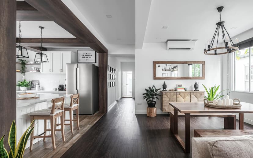 Rustic comfort meets modern practicality with wood accents and homely charm.